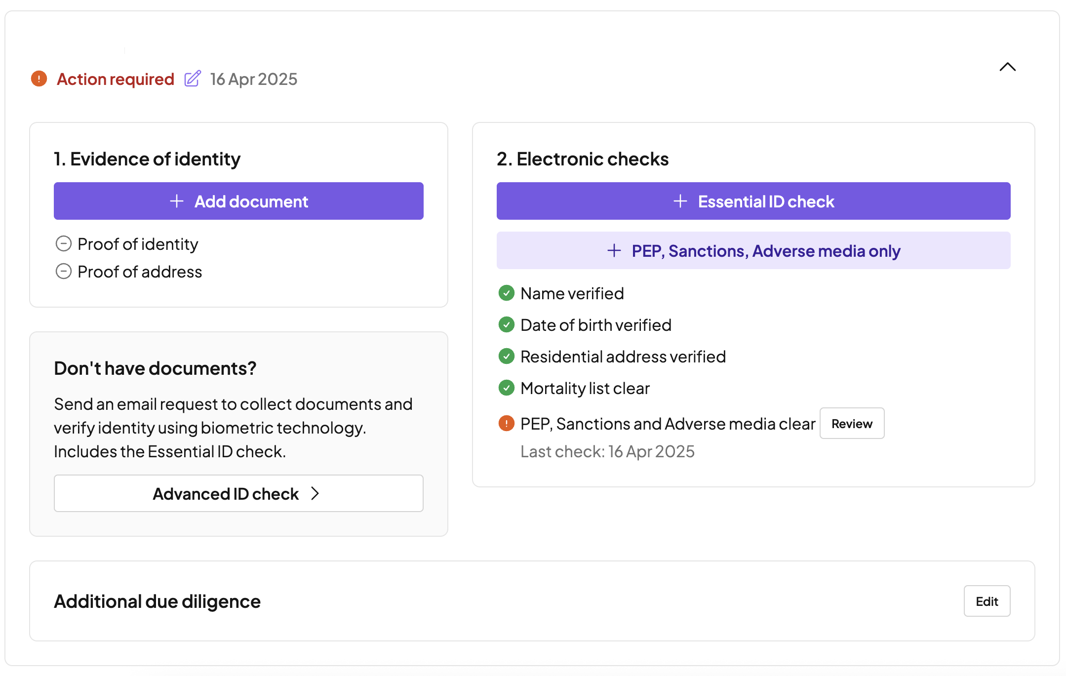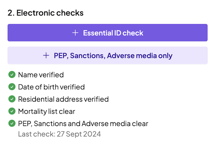 3️⃣: Under electronic checks, select the option, Essential ID check,