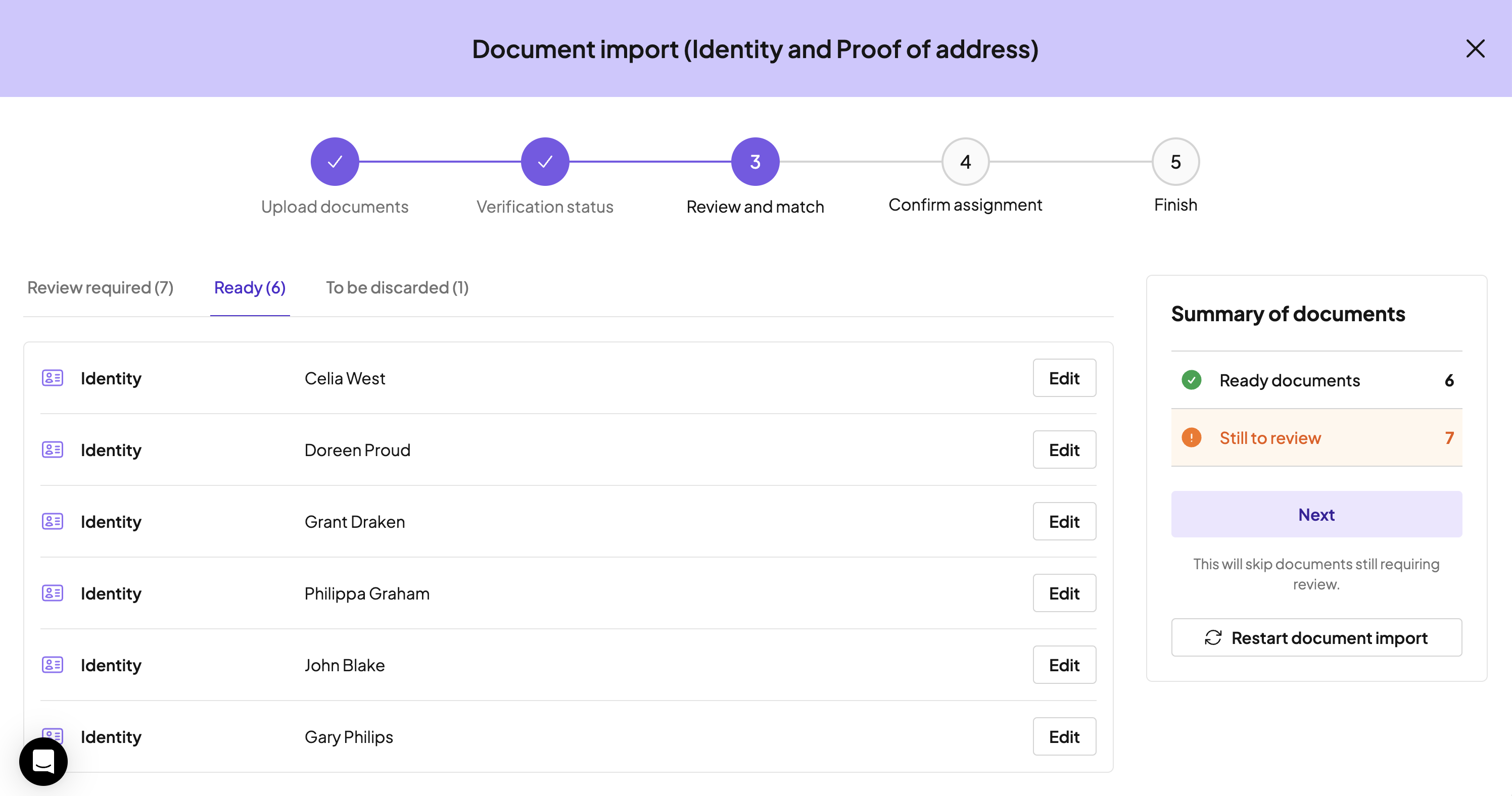 As a person can only have one identity and one proof of address in our system, this stage is checking that we are bringing in the correct documents for each person.