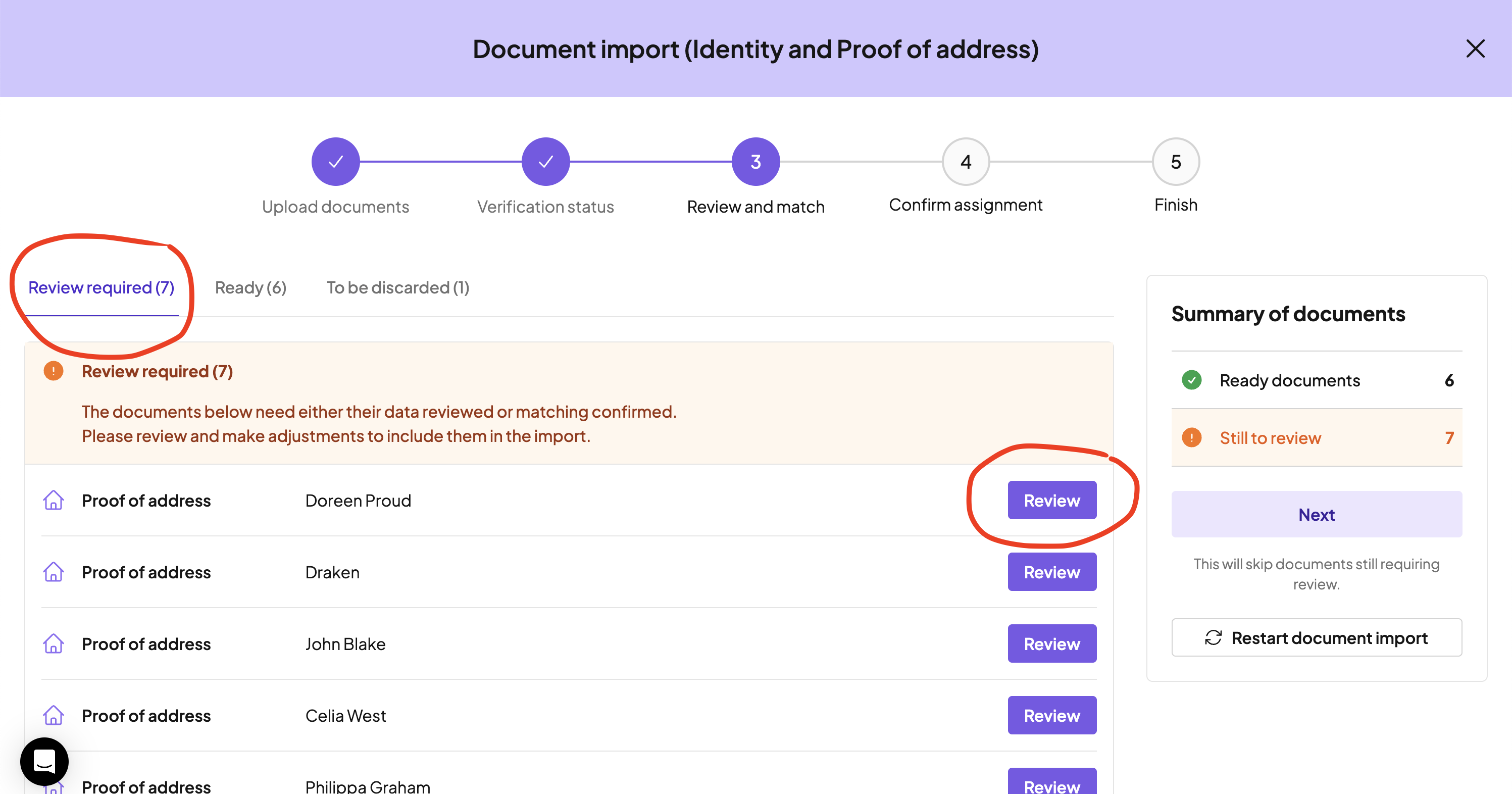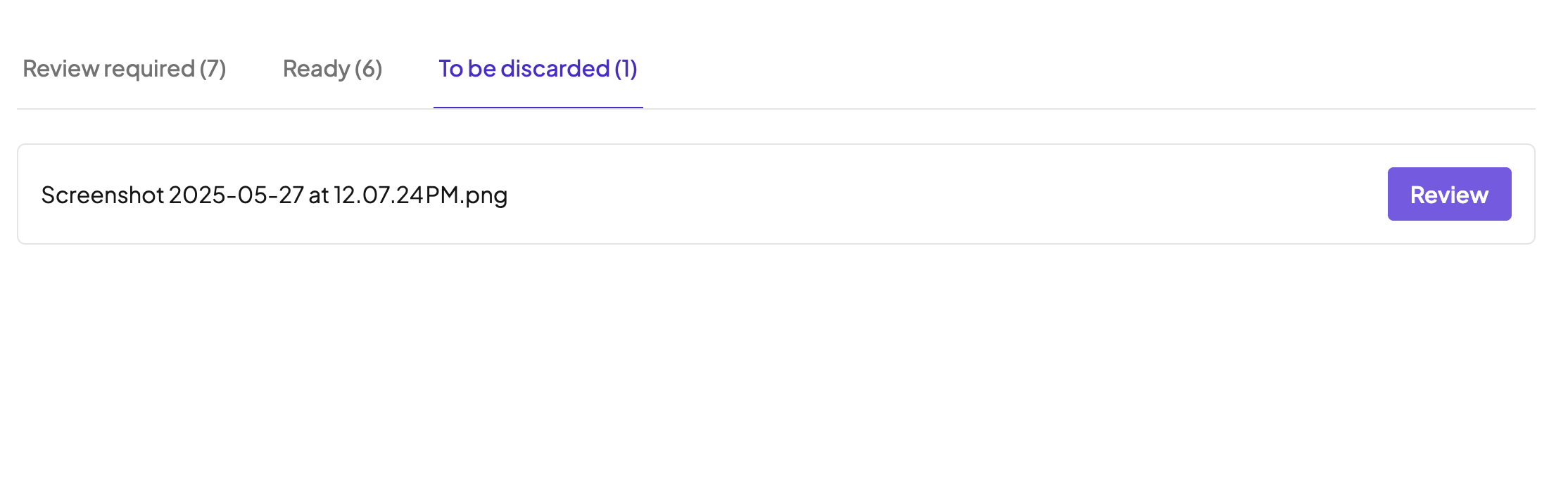 Any files that could not be recognised as a proof of identity or proof of address will be listed in the "Discarded" tab.