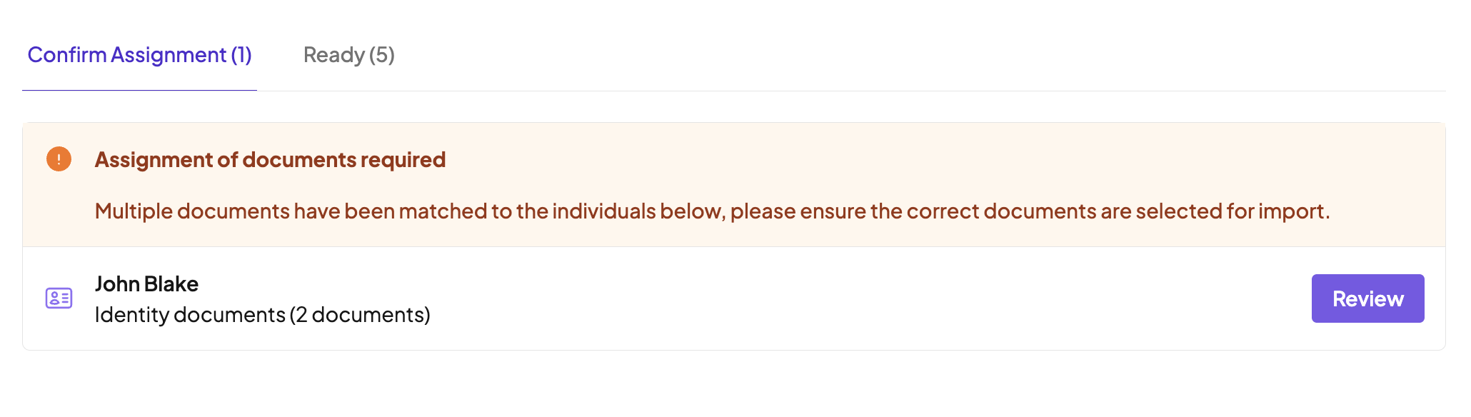 Any files that were able to read all the required fields, determine the document type and match to a person will be listed in the "Ready" tab and no action is required.
