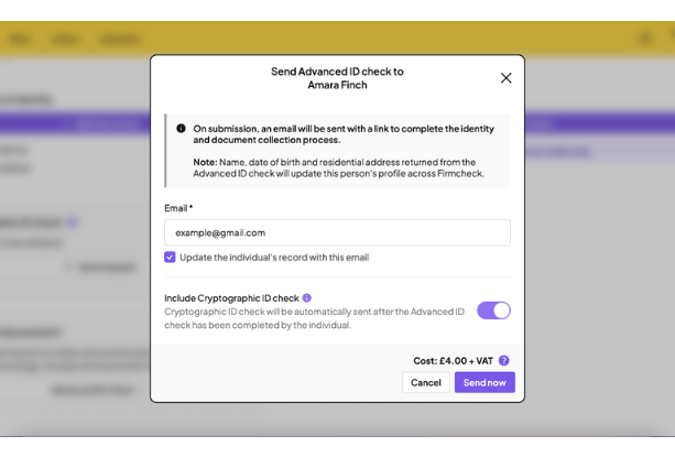 To meet the Option 1 standard for Companies House identity verification, your firm must complete both a biometric check and a cryptographic check. Firmcheck makes it easy to send these checks to your clients together, streamlining the verification process and ensuring compliance.