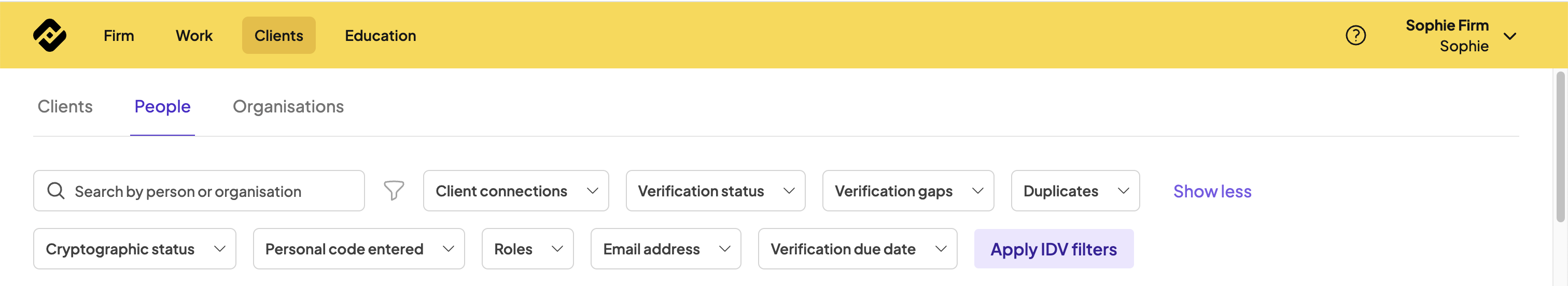 If you are sending bulk checks for IDV, select ‘Apply IDV filters’. This automatically applies the filters to refine the client list for those that require IDV - including those that have an upcoming due date.