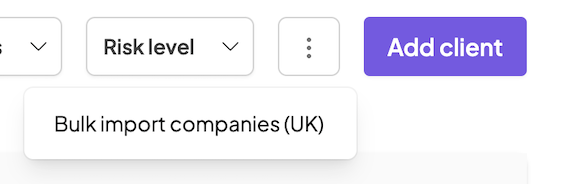 2. Select Bulk import clients, then choose whether you want to upload Companies, Individuals, Trusts, or Sole Traders.