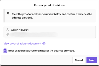 2️⃣: To review your client’s proof of address, click “Review” next to Proof of Address.