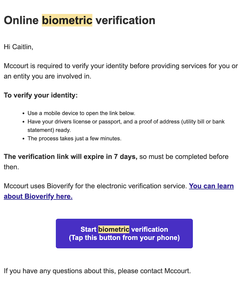 The email guides them step by step through the process, making it easy for them to complete the check securely.
