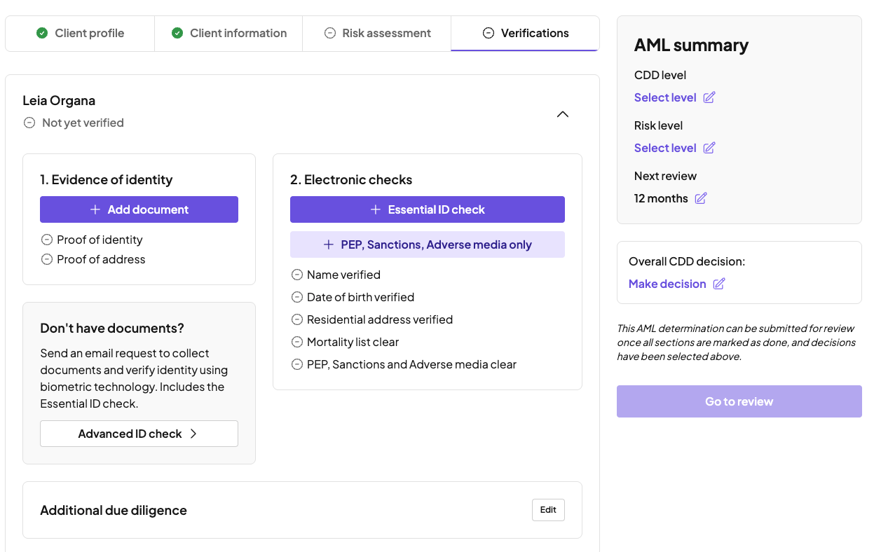 Once your client has confirmed they’ve completed the biometric verification or you see it marked as complete in Firmcheck, go to the Verifications tab in their profile.